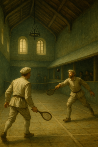 Henry VIII built courts at Hampton Court and Whitehall, often playing while politics seethed outside. The game was fast, tactical, exhausting — a duel in leather shoes. To play was to join the king’s inner circle in sweat and laughter.