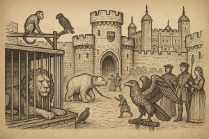 Long before it became a place of execution and imprisonment, the Tower of London astonished visitors with its living trophies of empire. The Royal Menagerie began in the thirteenth century, when Henry III received gifts of lions and leopards from the Holy Roman Emperor, and an elephant from Louis IX of France. By the time of the Tudors, the Tower’s beasts were as famous as its dungeons. Records tell of a polar bear, gifted by the King of Norway, tethered by a chain and led daily to the Thames to fish for its supper. Lions roared in iron cages, while monkeys capered in wooden pens. Eagles and owls were tethered near the Lion Tower, their cries carrying across the bailey.